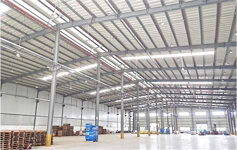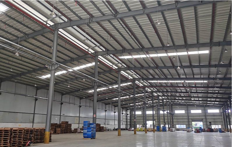 金钢砂防尘地面,可承重10吨/㎡;此外层高10米,带作业门5个,